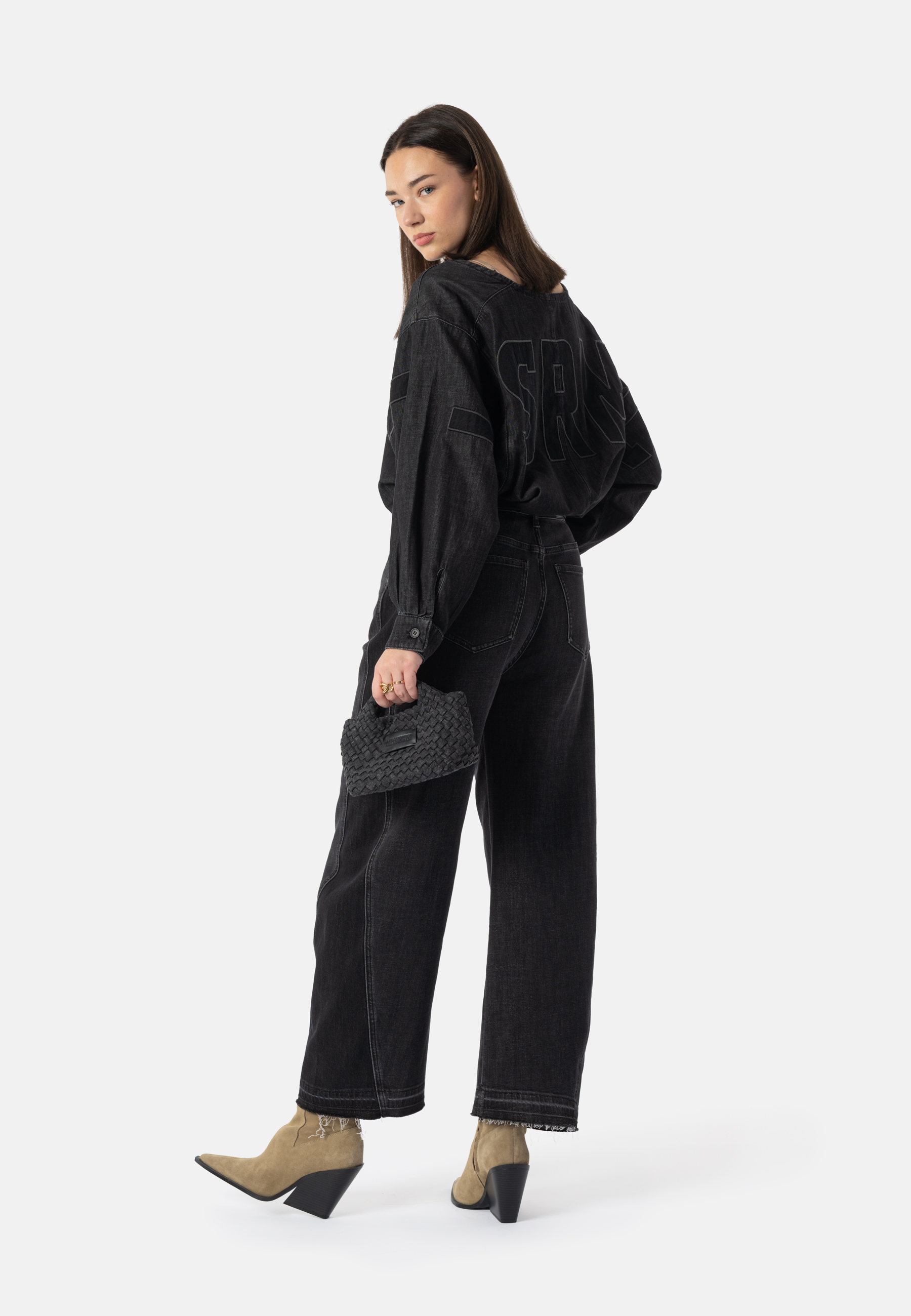 - Buchstaben Applikation in Kontrast-Denim-Farbe